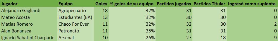 Máximos goleadores de la Primera Nacional en 2025
